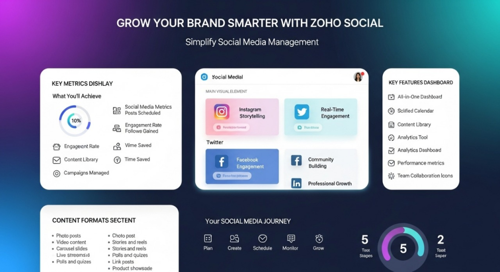 Whether you’re a startup building visibility or a large brand managing multiple profiles, Zoho Social gives you the tools to grow smarter, faster, and more efficiently.